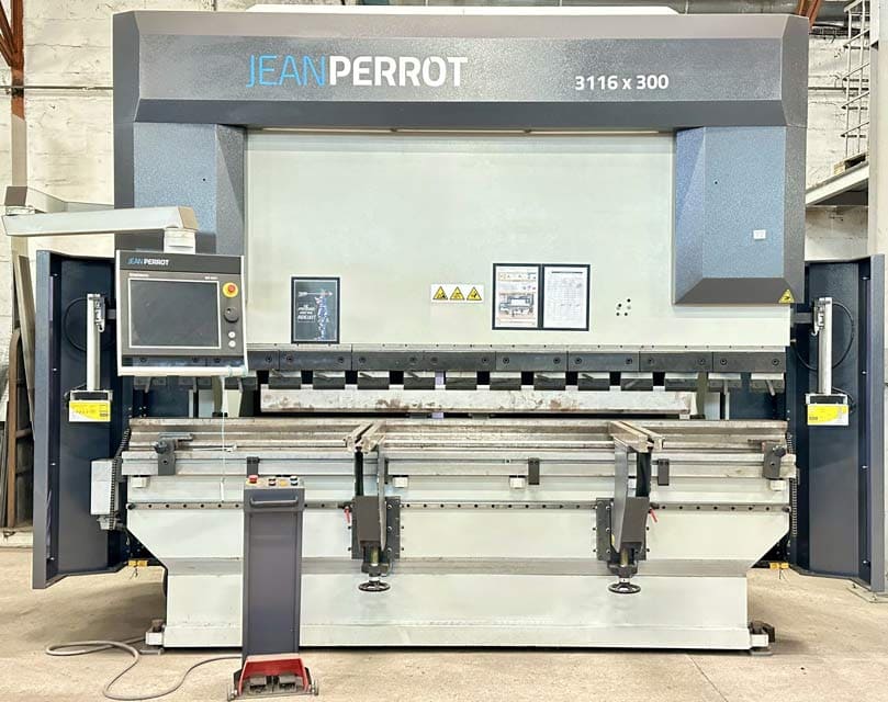 Pour vos structures lourdes et vos châssis industriels, la puissance de frappe est un critère de choix. MCT dispose d’une presse plieuse hydraulique Jean Perrot développant une force de 300 Tonnes.